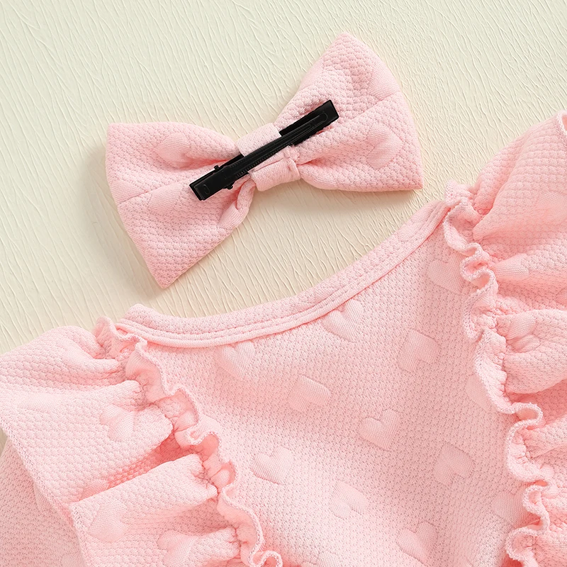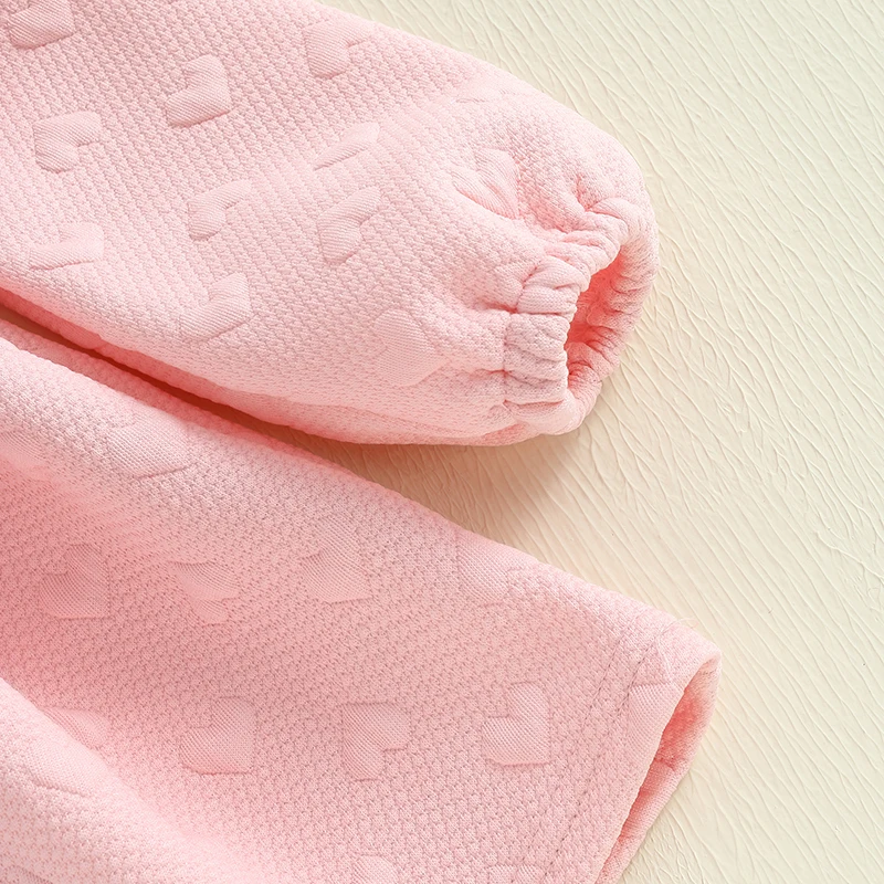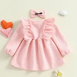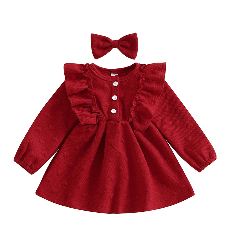 Toddler Girls Valentine's Day Dress Heart Jacquard Ruffles Long Sleeve Casual Dress Kids Princess Dress with Headband
