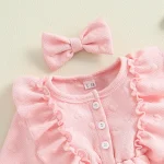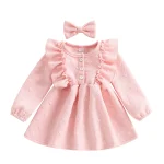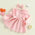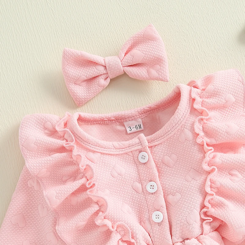 Toddler Girls Valentine's Day Dress Heart Jacquard Ruffles Long Sleeve Casual Dress Kids Princess Dress with Headband