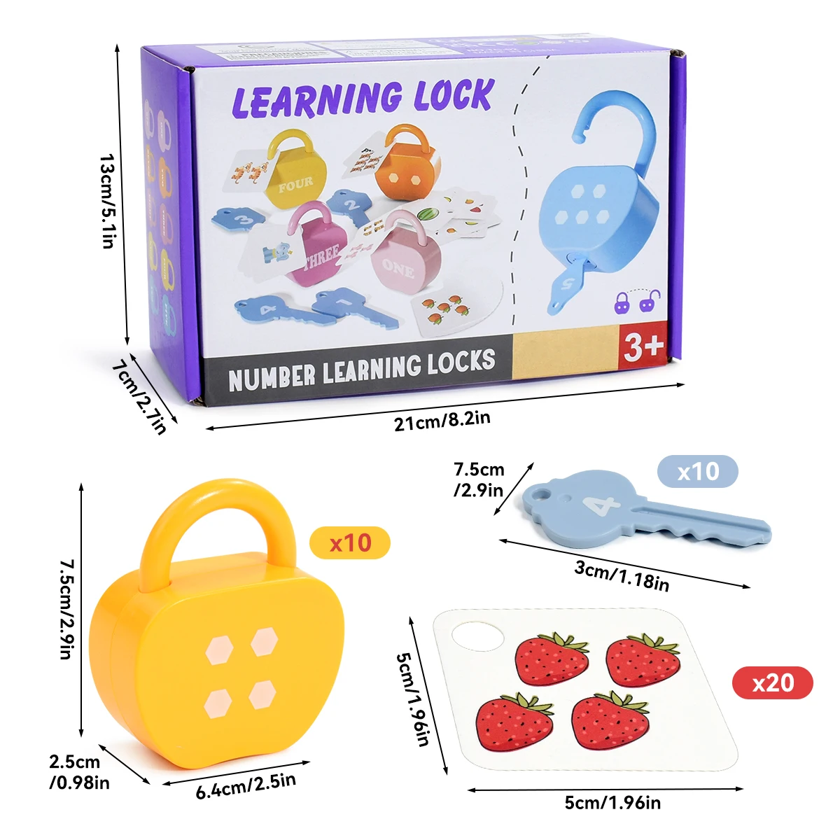 The digital learning lock game material is safe, non-toxic and well-made. The surface is smooth, the colors and patterns are very attractive to children, so as to better play the children's playfulness.Learning materials for autism,preschool learning activities.