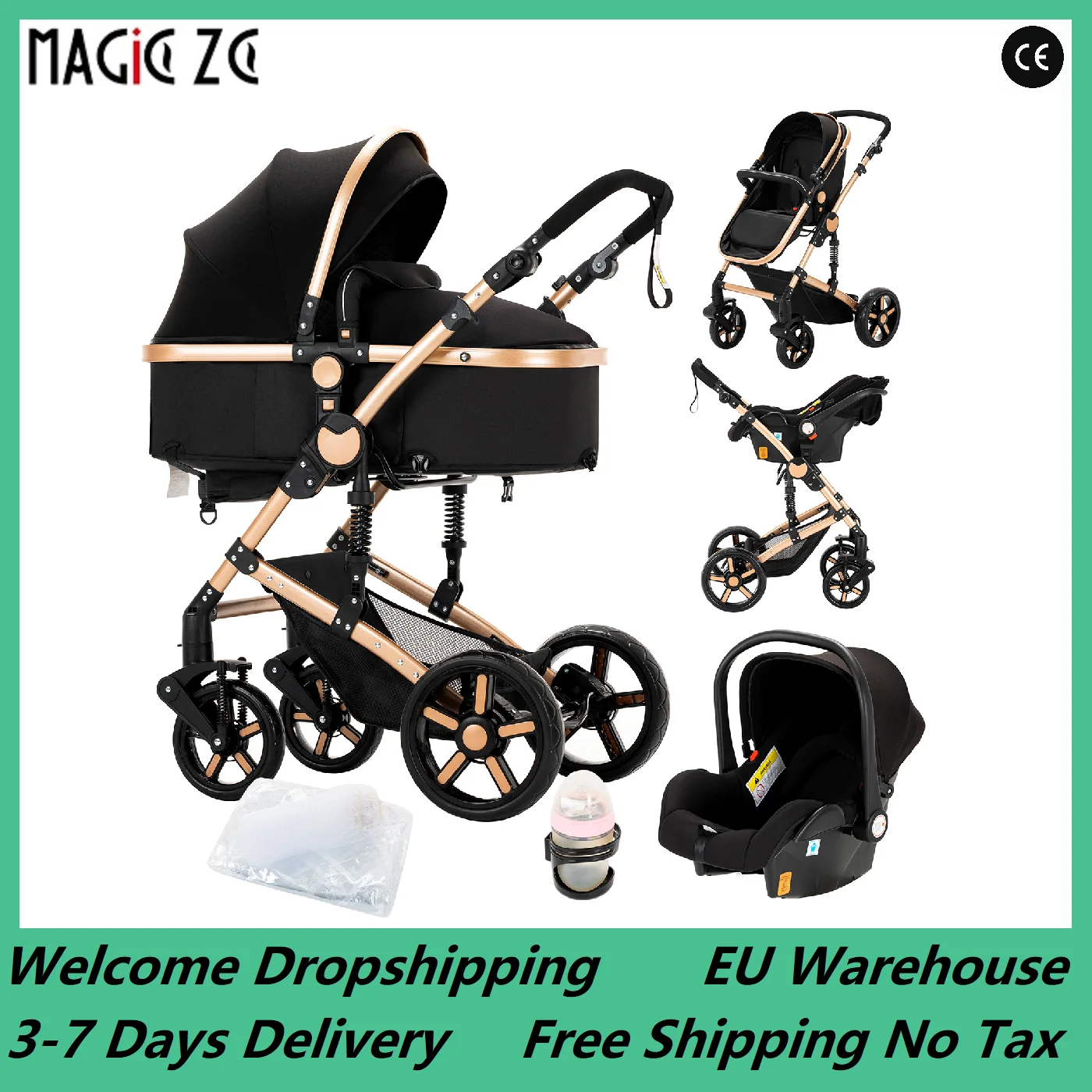 The Magic ZC luxury baby stroller offers 3-in-1 functionality, transforming into a stroller, infant car seat and stroller, adapted to different stages of baby growth.