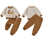 Baby Boy Thanksgiving Outfit Turkey Rugby Embroidery Long Sleeve Sweatshirt and Elastic Pants 2 Piece Clothes